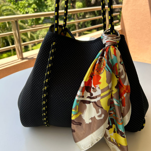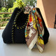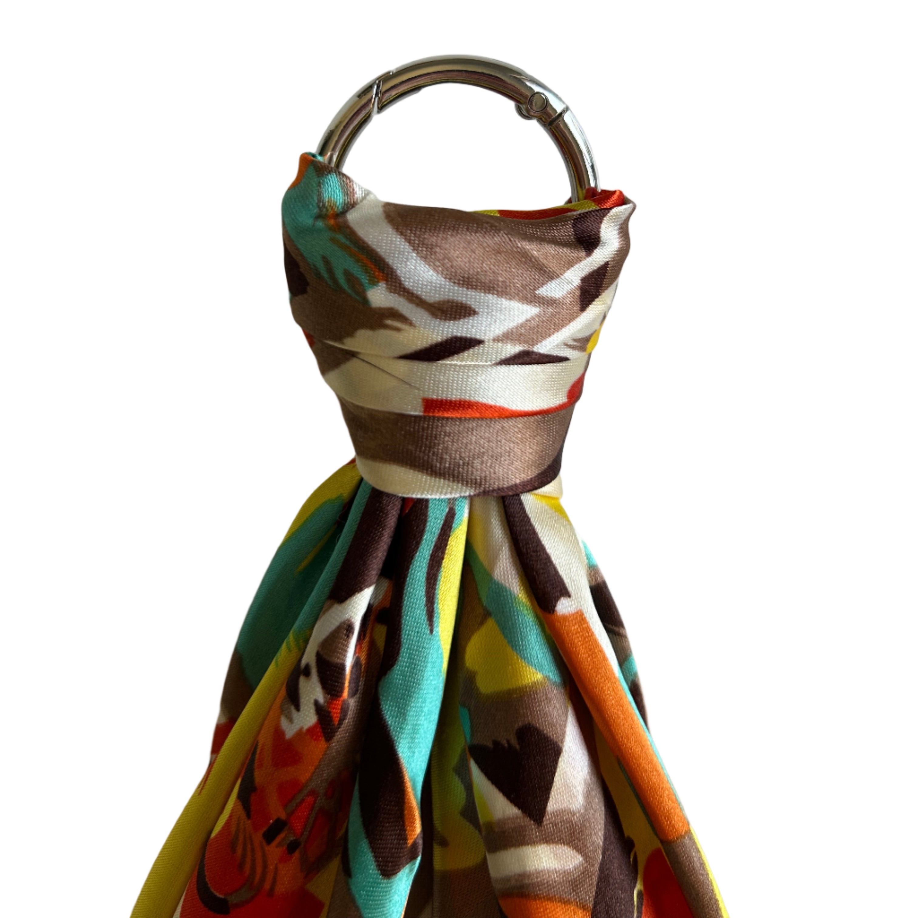 Charm de pañuelo con mosqueton circular metálico, el detalle perfecto para darle personalidad y estilo a tu cartera